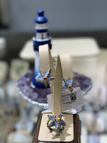 Комплект "Морские звезды" серебро, горячая эмаль, золочение