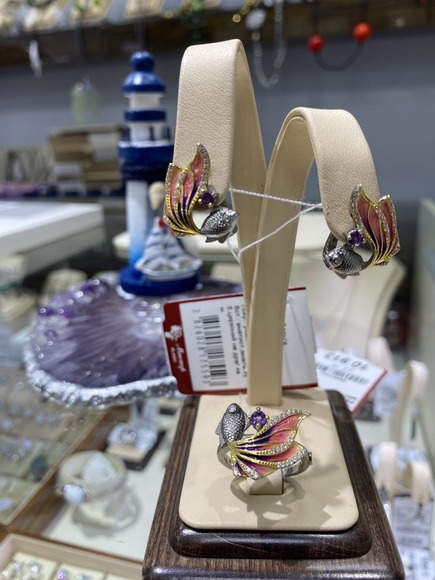 Комплект "Золотая рыбка" серебро, горячая эмаль, золочение