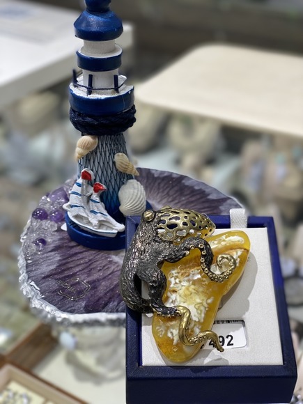 Брошь янтарная