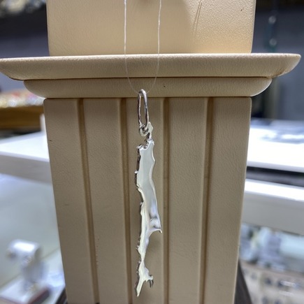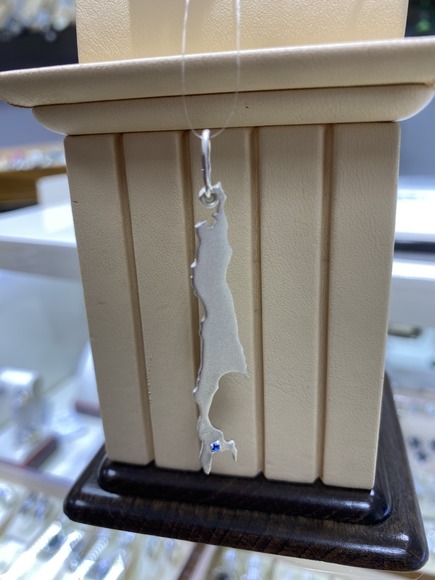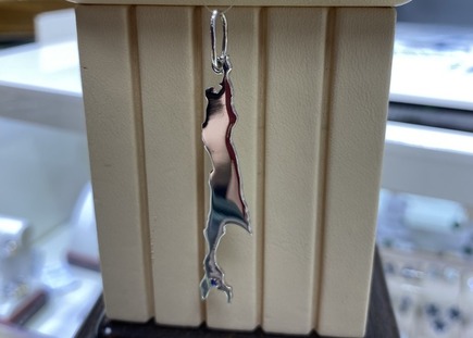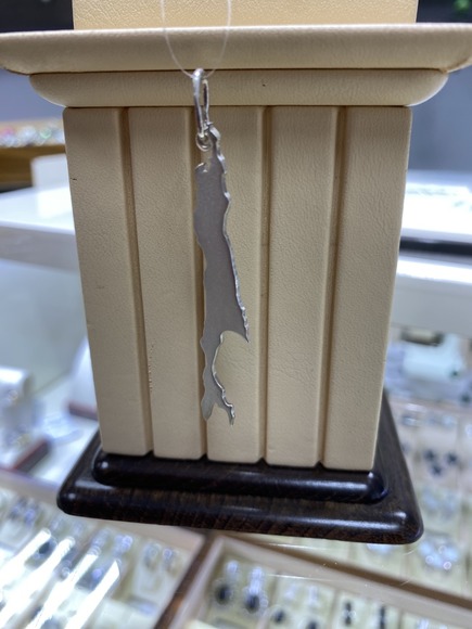 Подвес серебро "Сахалин" глянцевый с камнем в месте "Южно-Сахалинск" 6см 2200рублей