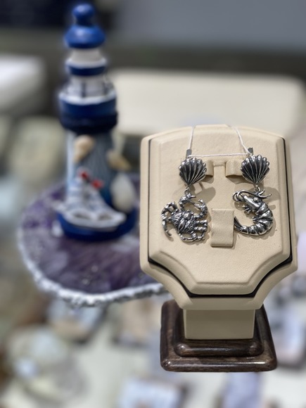 Серьги серебряные "Краб и креветка".