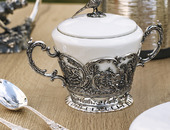 Столовые серебряные и мельхиоровые наборы "Эгоист" с рисунком в ассортименте